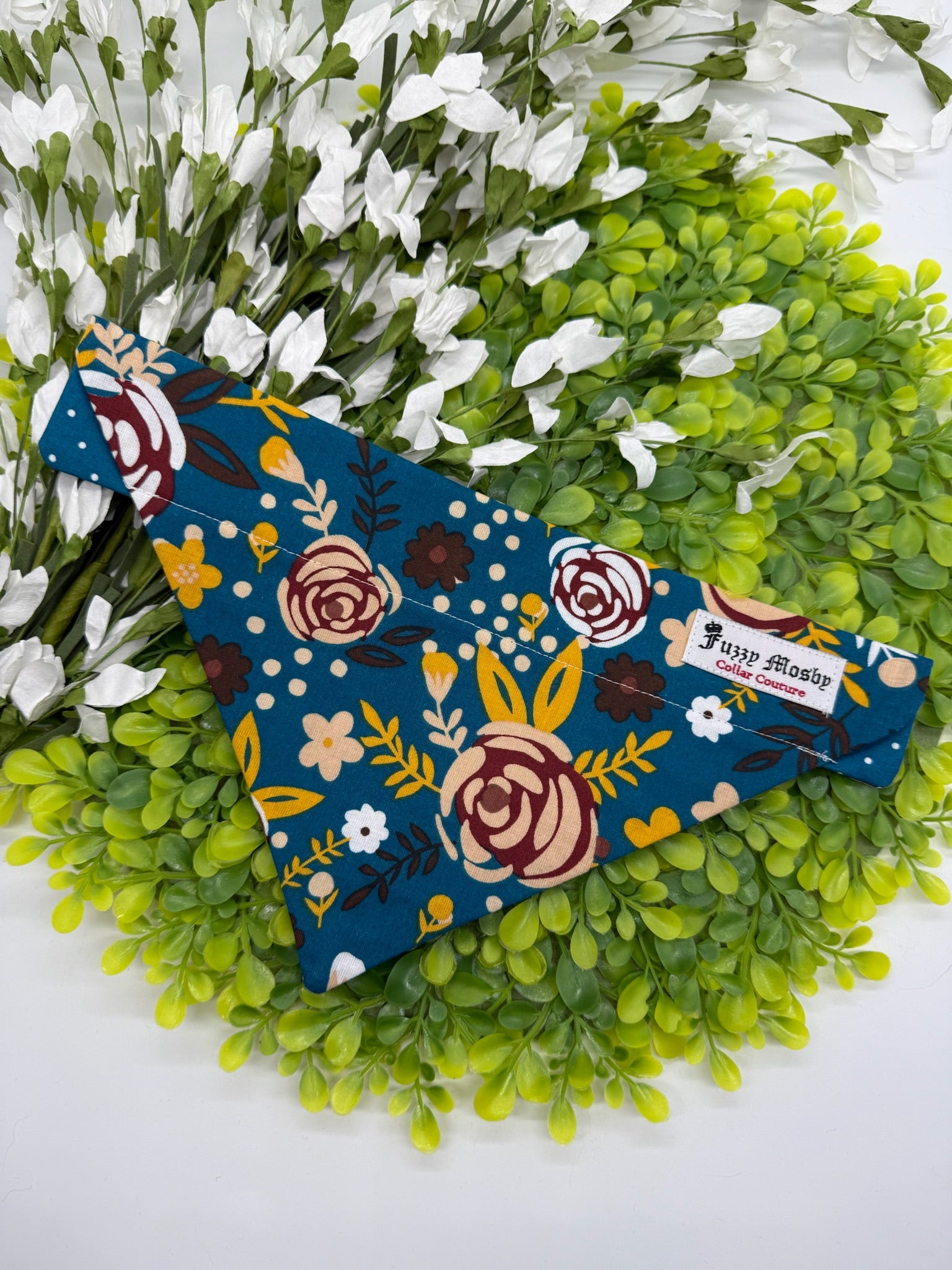 Our Fuzzy Mosby Collar Couture bandanas are unique, original, handmade items created using only the highest quality fabrics and materials with you and your beloved fur baby in mind. Each is designed for fun, quality, durability, and ease of use. Simply slide your dog or cat’s collar on and you’re ready to go! Makes the perfect gift for your special friend!