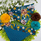 Blue & Gold Floral Slide-on Bandana