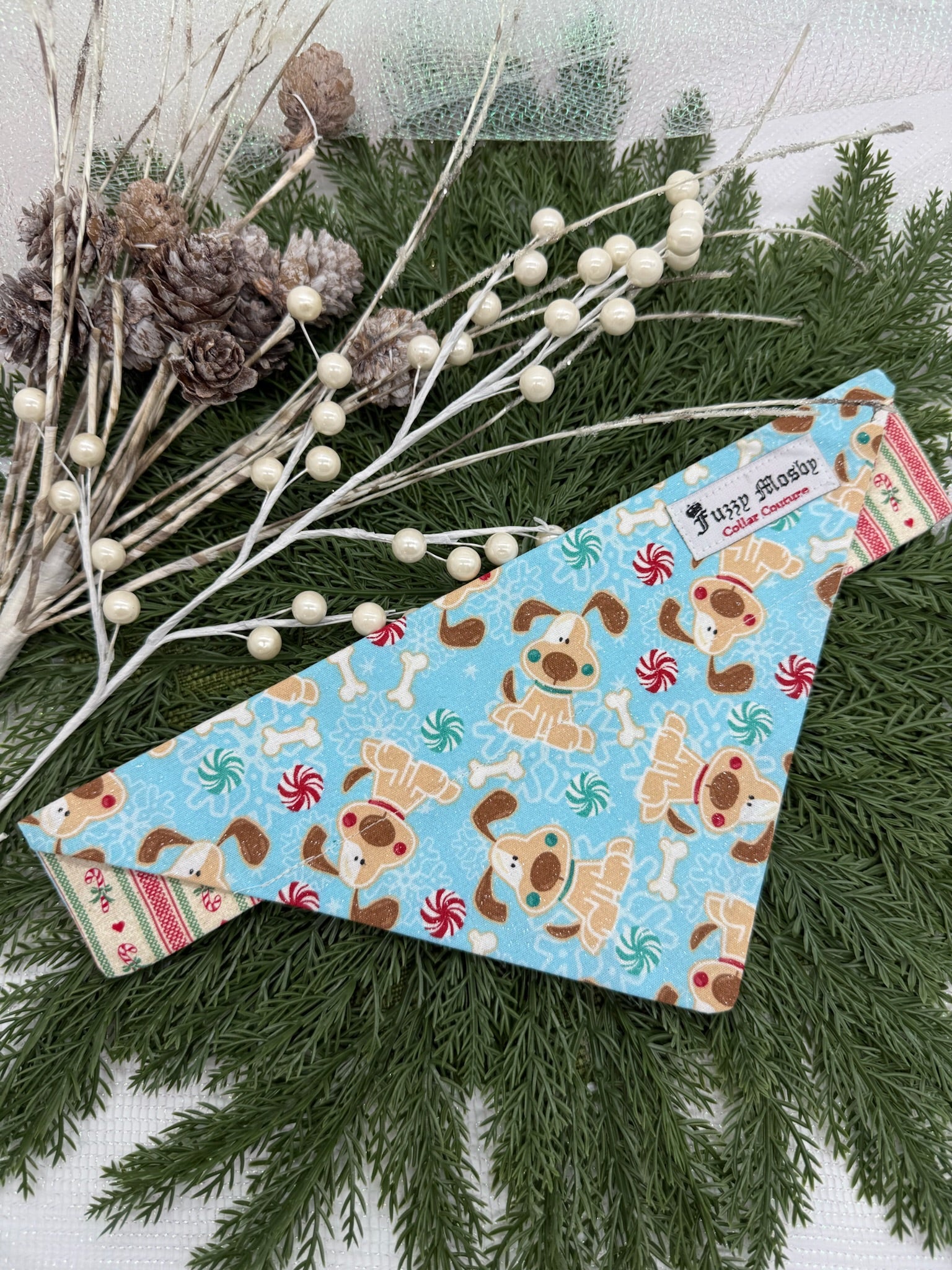 Our Fuzzy Mosby Collar Couture bandanas are unique, original, handmade items created using only the highest quality fabrics and materials with you and your beloved fur baby in mind. Each is designed for fun, quality, durability, and ease of use. Simply slide your dog or cat’s collar on and you’re ready to go! Makes the perfect gift for your special friend!